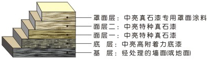 ★ 用抹涂(抹刮)方法施工,表面粗糙適宜。 ★ 雨水沖刷不泛白、陽(yáng)光曝曬不泛黃。 產(chǎn)品特征:溶劑型、彩色、單組份。 典型組合: