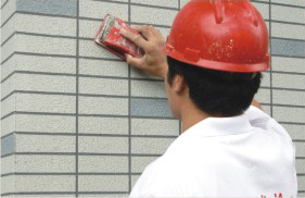 第九步:打磨修邊 中亮仿墻磚涂料干燥后(約二天),用磨砂板(或砂紙)刮抹涂層的毛刺和邊口等不平整的凸出涂層,其中陽角部分可用砂紙適當打磨一下(或打磨成一小R角),使得陽角不要太尖銳。
